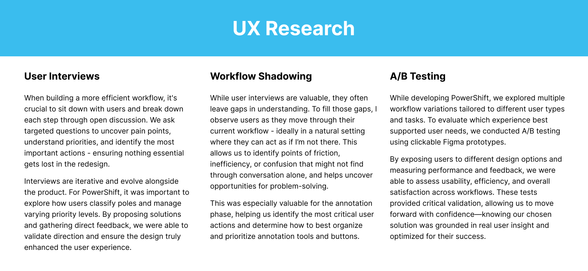 User research, Synthesis, Wireframing,